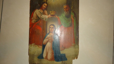 Икона старинная средина 19 века Венчание Богородицы на дереве Без реставрации |