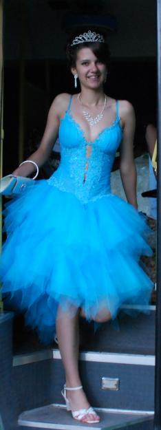 Продам ШИКАРНОЕ нарядное платье небесно-голубого цвета! В нём Вы будете Королевой любого торжества! Всего 650грн.! Размер s-m, сзади корсет на шнуровке. Пышная юбка-пачка из фатина. |
