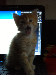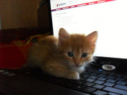 Рыжая кошечка, единственная в своем роде. Уникальна тем, что за всю жизнь матери-кошки в приплоде не было кошечек рыжего окраса. Любопытна и игрива (гоняет по квартире как угорелая), знает лоток. Полтора месяца от роду. Вырастет хорошим охотником, как и ее мама. Желающие могут связаться по телефону: (098) 889 08 12 (Надя) |