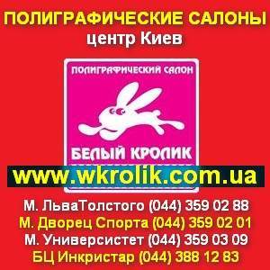 Полиграфические салоны Белый Кролик предлагают: Цифровая и офсетная печать в центре Киева. Полиграфические услуги в Киеве: печать буклеты, брошюры, листовки, визитки и бейджей, плакаты и постеры, календари, блокноты и бланки, дипломы, отчеты, презентации, сертификаты, стикеры, флаеры. м. Льва Толстого (044)3590288 м. Дворец Спорта (044)3590201 м. Университет (044)3590309 БЦ «Инкристар» пер. Островского, 1 (044)3831283 www.wkrolik.com.ua |
