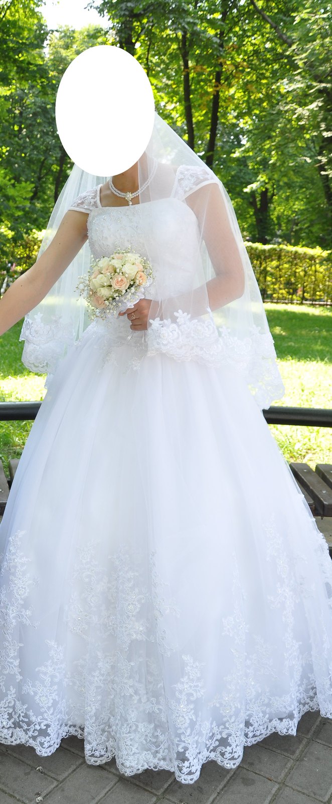 Продается красивое свадебное платье. В идеальном состоянии, куплено в салоне. Цвет- белый. Размер 42-46, рост 160-170. Рукава (крылышки) можно отстегивать. Очень удобный корсет, расшит ( как и низ юбки) изысканным кружевом и бисером. Одевалось один раз. Фирменный чехол, подъюбник и кольца продаются в комплекте с платьем. |