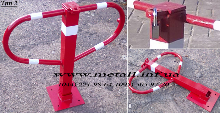 Складной парковочный столбик «Бабочка» под навесной замок. Изготовление и установка механических складных парковочных столбиков «Бабочка» для ограничения въезда на паркоместо, тротуар, территорию в г. Киеве. Высота парковки h=620мм, ширина b=650мм. Цвет – красный. Тел. (044) 221-98-64, (096) 797-02-20 (моб), (095) 5059720 (моб). Сайт: www.metall.inf.ua |