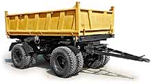 Самосвальный прицеп САТ-14А с разгрузкой на боковые стороны предназначен для перевозки навалочных и сыпучих грузов. Прицеп может быть оснащен изогнутым дышлом для работы с самосвалом с задней разгрузкой.
