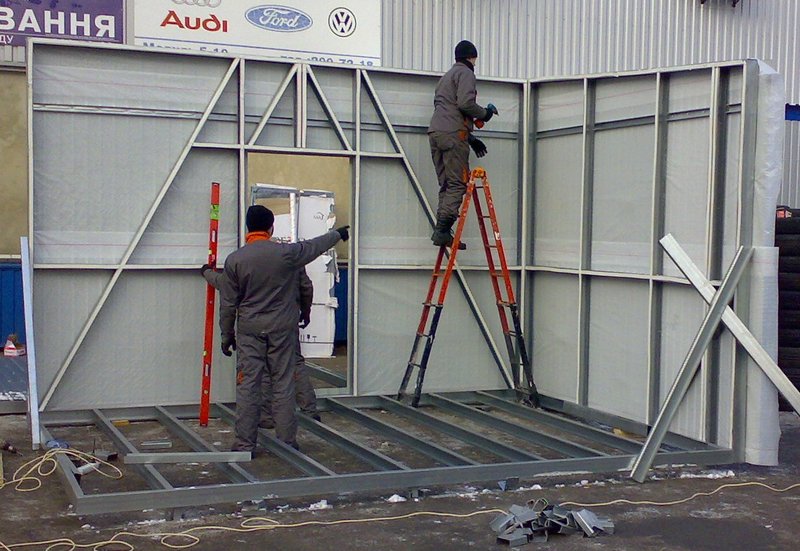 Компания изготавливает под индивидуальный заказ металлические модульные и сборно-разборные торговые павильоны, ларьки, киоски, МАФы, торговые ряды, мини магазины. Торговые павильоны изготавливаются из оцинкованных профильных конструкций и комплектуются окнами, дверями, электрикой, автоматикой защиты, освещением, обязательно 100мм. утеплителем с использованием паро и гидробарьеров, фасадной и внутренней обшивкой по желанию Заказчика. Возможна поставка зданий на объект в нескольких вариантах изготовления. В виде полностью готовых строений или нескольких модульных блоков (подходящие по габариту автотранспорта, для транспортировки) в дальнейшем собранных между собой в одно целое здание. Либо в виде фактически готовых панелей стен, пола и крыши в итоге монтируемые в течение небольшого времени в здание "под ключ". Дополнительно комплектуем витринной мебелью. Срок изготовления 10 дней. Осуществляем доставку по всей территории Украины. Подробней о технологии производства на сайте: http://www.tsv.com.ua