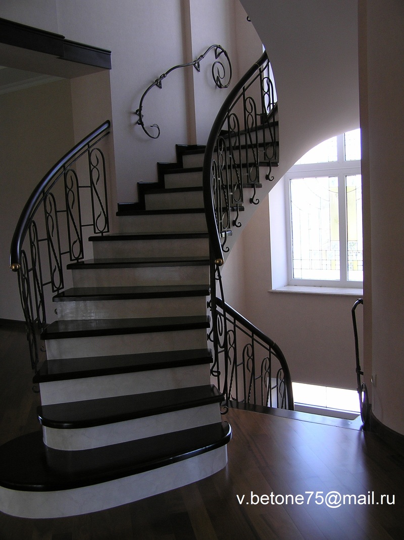 Проектирование и изготовление монолитных лестниц и входных групп. Широкий спектр отделочных материалов и вариантов ограждений(дерево, стекло, кованные элементы, декоративная штукатурка) |