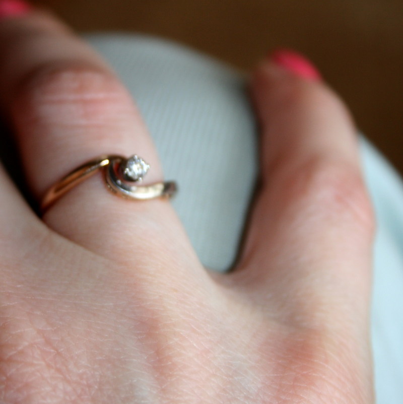 продам золотое кольцо, с маленьким бриллаинти. симпатичное, аккуратненькое, где-то 16,5 размер. |