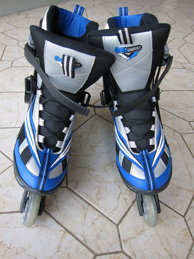 1. Мужские ролики RE:action R052M, размер 45 (на ногу 43 размера). В отличном состоянии, в коробке. Цвет: чёрно-синие. Рама: Полипропилен. Подшипники: ABEC 3. Колеса: полиуретановые, размер 78 мм, жёсткость 80A. Застежка: Микрометрическая бакля / Шнуровка / Velcro липучка.