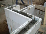 Термоблоки – это полые пенополистирольные блоки 1000*250*250. В блоки заливается бетон, который заполняет пустоты, как в вертикальном, так и в горизонтальном направлениях и, по сути, являются несъемной опалубкой. Набирая прочность, бетон образует монолитную конструкцию здания, а полистирол является отличным утеплителем (коэффициент теплопроводности стены без отделки – 0,28 вт / м2 час.град). |