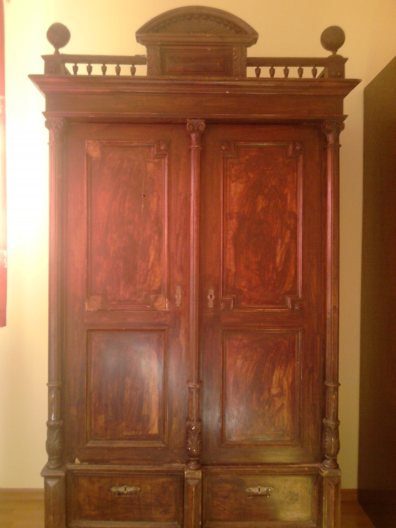 стариный шкаф, конец 19-го века. В хорошем состоянии, для идеального состояния нужна реставрация. Размеры: высота 220см, ширина 120см, глубина 60см (без учёта резных колонн) Если необходима помощь, можем предоставить мастера рестовратора. За пять тыс грн (без учёта материалов) берётся отреставрировать его. 06762454058 Надежда |