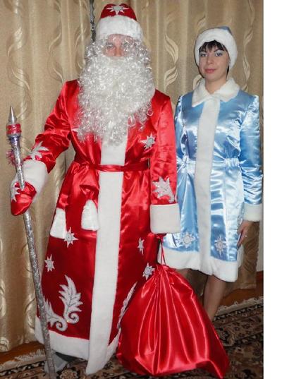 Продам новый, красивейший и шикарный костюм Деда Мороза и Снегурочки. Можете купить отдельно костюм Деда Мороза или Снегурочки. Костюмы изготовлены из атласа, на синтапоне, украшены пайетками и мехом. В комплект также входят шапка, рукавицы, усы-борода, мешок. Такой костюм можно использовать на корпоративных вечеринках, смотрится просто супер - фото прилагается!!! Могу переслать в любой город Украины. |
