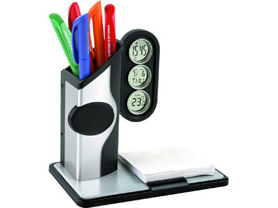 Подставка под ручки с часами, датой, термометром, бумажным блоком - Канцтовары