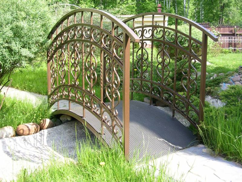 Всё большую популярность, в наше время, начинают набирать кованые изделия для пригородных домов и садовых участков и кованые мостики не являются исключением - это превосходный способ подчеркнуть красоту и уникальность Вашего сада или водоёма.