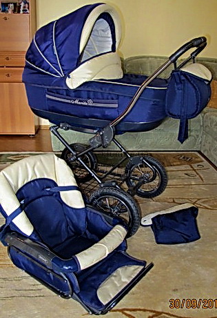 Полный комплект:льлька для новорожденного,прогулочный блок,шасси(металический каркас на больших колёсах),стильная сумочка для мамы,дождевик.