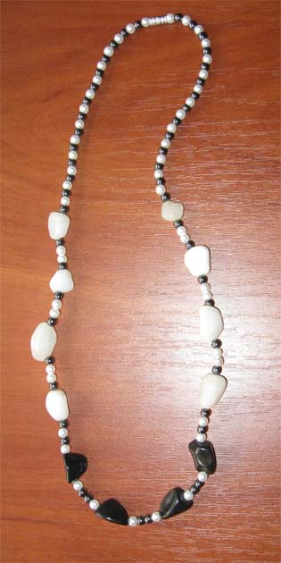 7. Бусы «Домино». Натуральный камень имитация под жемчуг, закручивающаяся металлическая застежка. Длина с застежкой 53 см. Цена 45 грн.