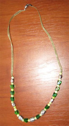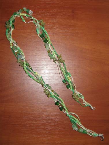1. Браслет «Кошачий глаз». Бисерный жгут, стекляннные бусины, металическая фурнітура. Длина 64 см. Свободно оборачивается вокруг руки 3 раза. Цена 30 грн.