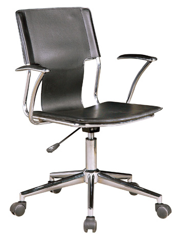 Кресло, средней высоты спинка, сидение и подлокотники кожзам, хромированная фурнитура, на колесах, 56*55*84 ~ 94. |
