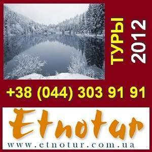 Новый год в Берегово, термальный бассейн, замки Закарпатья, Ужгород, Мукачево, Львов 29.12.2011- 04.01.2012 - 1730 грн. Хустский замок, Синевир, Шипот, дегустация вин 29.12.2011-03.01.2012 - 1750 грн. Синевир, термальный бассейн Берегово, Ужгород, Мукачево, катание на лыжах 29.12.2011-04.01.2012 - 2250 грн. Проезд, проживание, питание, страховка. +38(044)3039191 +38(067)2253399 Киев, ул. Жилянская, 7-б www.etnotur.com.ua |