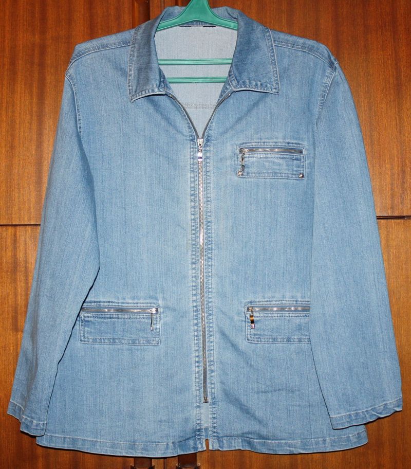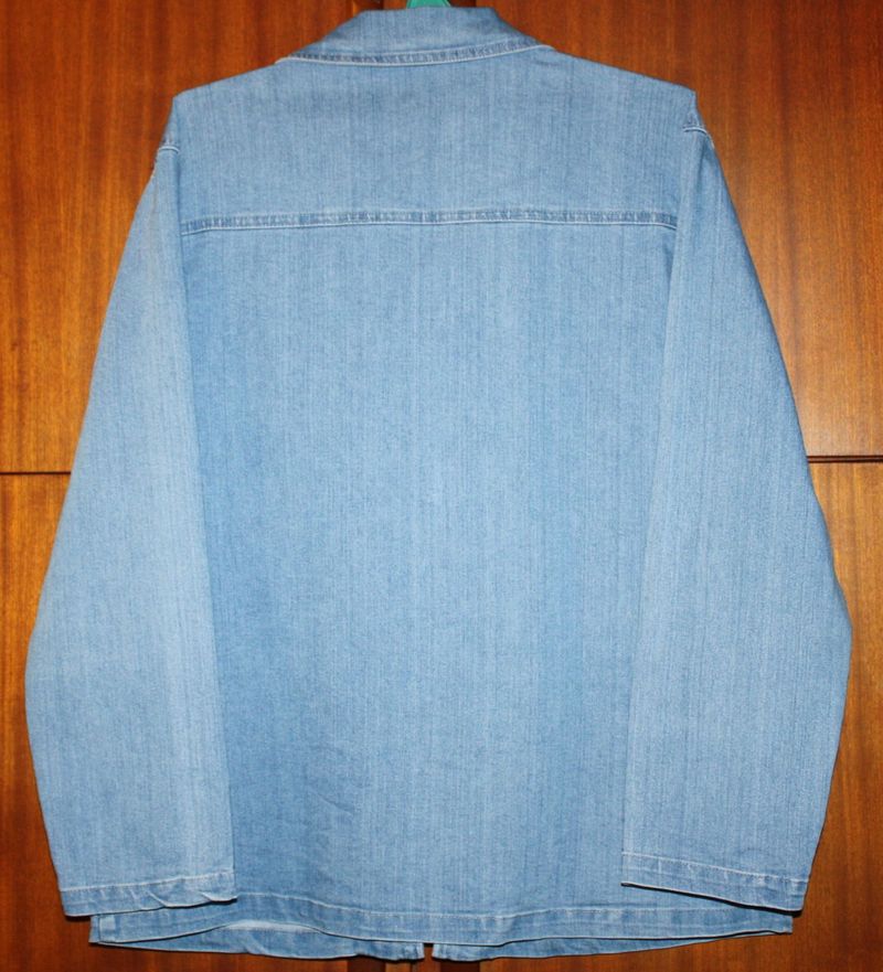 Джинсовая куртка раз. 52-54 слегка приталенного силуэта на молнии до воротника.Состояние отличное. Цена 80 грн Длина куртки-75см, половина ширины под мышками-59см, половина ширины на уровне талии-55, половина ширины по низу-64. Ширина спинки-46, длина плеча-18, длина рукава-61 |