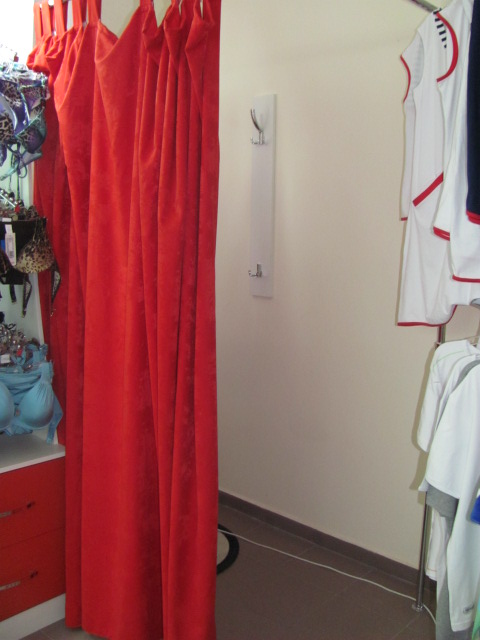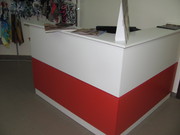Комплект мебели бело-красного цвета. 7 стеллажей для белья стойка для одежды примерочная(зеркало,вешалка,шторка красного цвета) торговый стол(ресепшн) |