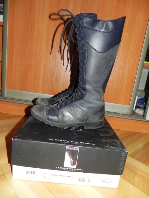 Сапоги GEOX, настоящие итальянские. Очень качественная обувь, не промокает, нога дышит, не потеет. Утепленные, осенний вариант, но я ходила в них зимой, потому что они не промокают! 38 размер, кожа. |