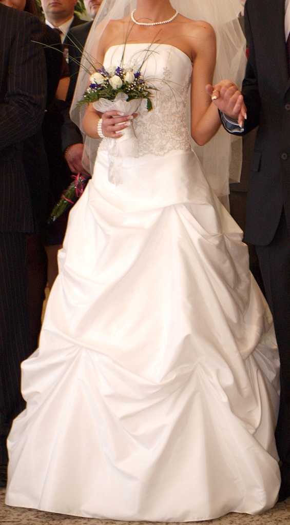 Свадебное платье шикарное, готовое (США), расшитый лиф, шлейф, тяжелый матовый шелк, подъюбник, фата. В идеальном состоянии. Размер 40-42 (на очень стройную невесту), нет никаких шнуровок. Платье - верх изысканности и интеллигентности. Не венчаное. |