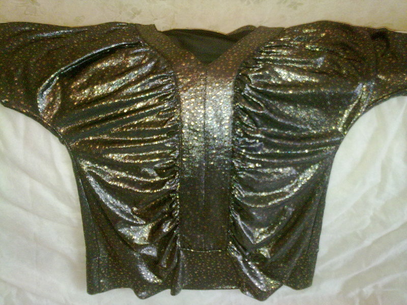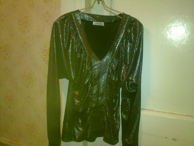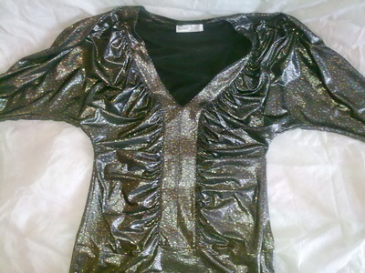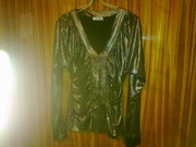 Продаю- нарядная и стильная вечерняя блуза! Черная с золотистым блеском. Одевалась 1 раз на карпаратив. Состояние отличное. Светоотражающий эффект за счет блестящей ткани. Отлично смотрится как под брюки так и под юбку. Создает красивое декольте на груди. Драпировка по всей длине и на рукавах. Хорошо садится по фигуре. Размер 40(рус46). Подойдет и на 38 и на 48 - тянется. Рост средний. Производство Турция. Цена 120грн. Тел 0503355822 |