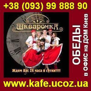Кафе «Шкварочка» предлагает: Новогодний корпоратив Киев Троещина от 180 грн/чел! Доставка обедов в офис на дом по Киеву от 20 грн. Заказать кафе на Новый год 2012 до 45 чел. Заказ обедов в офис, офисы, на дом, в квартиру. Корпоративный Новый год, праздник в кафе. Доставка обедов по городу Киеву быстро! Заказать кафе День рождения, юбилей. Комплексные обеды в офис -50%. Ведущий, тамада, Ди джей, Шоу-программа. Валентина +38(093)9988890 Киев, Електротехническая, 18 www.kafe.ucoz.ua |