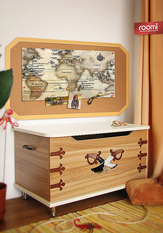 Сундук для игрушек "Корсар" + пробковая доска в рамке на стену.