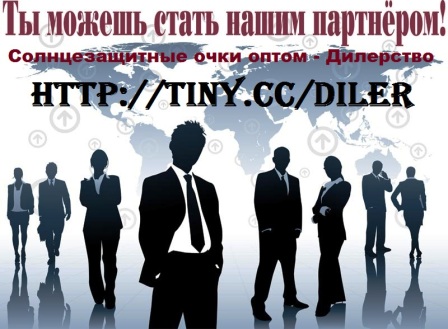 Ведущая Компания - солнцезащитные очки оптом. Приглашаем партнёров-дилеров в регионах. Гарантия эксклюзивности, дилерская цена, профессиональная поддержка, хорошие условия. Очки Sensus, Nox, City Vizion, Kool Kids, View Optics, MLook, Cosmo, Polar View, Polar Glare, Avanglion, Ozzie, Toxic, Retro, Rolling, AbOriginal. Самые продаваемые, стили, категории, расцветки. Мужские очки, женские очки, детские очки, спортивные очки, поляризованные очки, ретро очки, авиатор, очки Wayfarer, клубные очки, очки для водителей, очки для чтения. Подробно на сайте http://tiny.cc/diler |