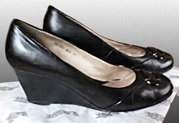 Туфли женские черные кожаные на танкетке. Фирма Welfare производство Евросоюза. Размер 39, но больше идут на 40. Натуральная кожа внутри и снаружи, танкетка средней высоты. Б/у, состояние на 4+. На танкетках и носке одной туфли мелкие царапины. Нужно заменить набойки. Туфли удобные и устойчивые. Строгая классика оживлена декоративными скромными пряжками на носках туфель. Торг. |