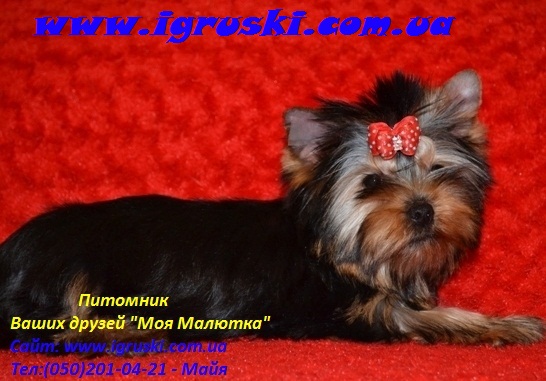 Элитные щеночки йоркширского терьера питомника Моя Малютка – экстра-мини, мини и стандарт, родословные КСУ (крови ведущих питомников мира Франция, Италия, Канада, Россия), с шелковыми волосами, яркого окраса, мордашки беби-фейс. Разного возраста. Доставка по Украине бесплатная. Приучены к лотку (пеленки). Это очаровательное существо с своей необычной красотой и необыкновенным интеллектом удивит вас. щенка йоркширского терьера иным словом игрушку вы можете выбрать себе на нашем сайте www.igruski.com.ua (050)2010421-Майя |