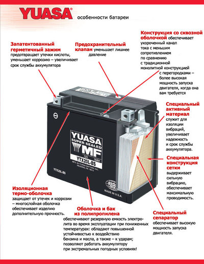 Аккумуляторы Yuasa обладают повышенной мощностью, увеличенным сроком службы и требуют проведения минимального технического обслуживания!