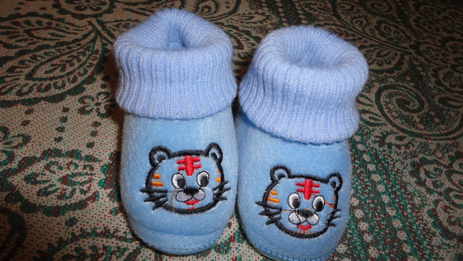 Тапочки с носочком, новые на маленькую ножку. Возраст: 6-9 мес. Длина по стельке: 10.0 Продам тапочки-котики с вязаной резиночкой (длина по внешней стороне 10 см). Ориентировочно тапочки рассчитаны на малыша до года. |