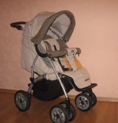 Колясочка в отличном состоянии!Дождевик еще пахнет чиковским магазином,в кот ее покупали за 2500 грн. Коляска новейшая! Есть все документы! Полный комплект! Просто мы так на ней и не поездили особо,не пришлось. Коляска – супер, от 0 до 3-х лет, манёвренная (передние сдвоенные и поворотные колёса),удобная для малыша (оч много места),выдерживает все нюансы наших украинских дорог. Спинка откидывается на 3 положения, подножка и ручка тоже регулируются. Поручень мягкий, съемный. Также легко снимаются все мягкие детали коляски,все можно стирать. Пятиточечная система ремней безопасности. Вместительная корзина для багажа на 5 кг.Колеса большие,резиновые. Передние – двойные, вращаются на 360 градусов, блокируются. Задние – одинарные, чуть побольше, с реально надежным ножным тормозом. Вес коляски – 11 кг. Складывается в книжку колечками под ручкой и педалькой.