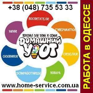Агентство «Домашний Уют» осуществляет подбор квалифицированного персонала: няни, няня к грудничку, гувернантки, воспитатели, репетиторы, домработницы, горничные, экономки, повара, сиделки, помощники по дому, помощницы по хозяйству, логопеды-дефектологи, охранники, массажисты, водители, садовники и др. +38(048)7355333 +38(048)7182266 +38(050)3929205 Одесса, ул. Семинарская, 18/20 www.home-service.com.ua |