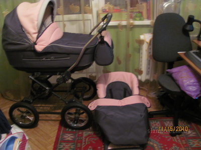полный комплект:льлька для новорожденного,прогулочный блок,шасси(металический каркас на больших колёсах),стильная сумочка для мамы,дождевик.