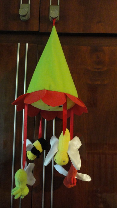 Подвеска на кроватку или сменник на мобиль, состояние новое. Яркие, забавные насекомые и солнышко в виде цветка. Цена 60 грн. |