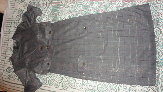Стильное офисное платье. На молнии, рукавчики короткие. Одевать можно под гольфик или лёгкую блузу. Перёд сделан обманкой под жилетку на пуговицах. Внизу на юбке складка. Размер 38 (наш 44). Состав ПЭ 62%, вискоза 35%, эластан 3%. Качество отличное. Одела пару раз. Замеры по запросу. Цена 155 грн. |