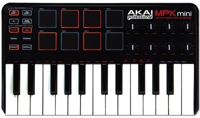 Midi-клавиатура Akai MPK mini - это USB MIDI клавиатура и педовый контроллер Akai MPK MINI. Согласно утверждениям фирмы Akai, портативный MPK Mini собрал функции контроллеров LPK25 и LPD8. Аппарат снабжен полным контролем программного обеспечения и небольшим размером (13 дюймов в ширину и весом около 1 фунта), новое устройство будет хорошо работать для создания музыки и Live перформансов. Akai отмечает, что MPK Mini будет легко помещаться в сумку для ноутбука или рюкзак.