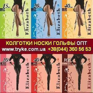 Оптовая продажа женских колготок ТМ ЭЛИЗАБЕТ в Киеве. Купить женские колготки ТМ ELIZABETH оптом, по оптовым ценам. Носки, гольфы и колготки с узором в Киеве. Женские колготки, носки, гольфы со склада в Киеве. Колготки, носки, гольфы выше колена. Гольфы, колготки, носки по акции! Женские колготки ажурные, плотные, матовые, цветные. Колготки, носки, гольфы - высылаем образцы. Колготки доставка по Киеву и Украине. +38(044)3605653 +38(044)5174218 www.tryke.com.ua |