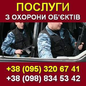Компанія ОХОРОНА пропонує: Послуги з охорони об'єктів Київська область, Біла Церква, Узин, Тараща, Володарка, Тетіїв, Сквира, Фастів. Цілодобова охорона об'єктів. Круглосуточная охрана объектов. Супровід вантажу. Сопровождение грузов. Охорона фізичних осіб. Охрана физических лиц. Охорона громадського порядку. Охрана гражданского порядка. Сергій Анатолійович +38(095)3206741 +38(098)8345342 |