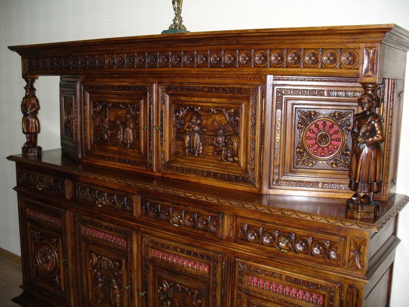 Cтоловый гарнитур: стол(раздвижной)+ 6 стульев(каждый с уникальной спинкой)+ шкаф-креденс + стеклянная горка ФОТО здесь: http://sites.google.com/site/antikvarmebel/home/stolovyj-nabor Киев, iren_bez@mail.ru |