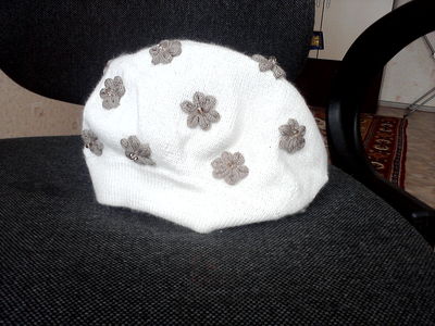 Берет шерстяной, в отличном состоянии, молочного цвета с коричневыми цветочками, Борисполь - ст.м. Харьковская |