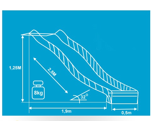 Горка очень высокого качества, что делает ее устойчивой к воздействию внешних факторов, сносу материала и устойчивой к нагрузкам. Горка может быть установлена на различных конструкциях на детской площадке, а также самостоятельно. Горка имеет длину 2,5 метра и максимальную нагрузку до 100 кг. Горку можно устанавливать на все виды конструкций, таких как деревянные дома, башни и т. д. Установка включает в себя крепления верхней части с двумя винтами и это занимает буквально 10 минут. Горка предлагается в четырех различных цветах. В комплекте нет в лестницы. |