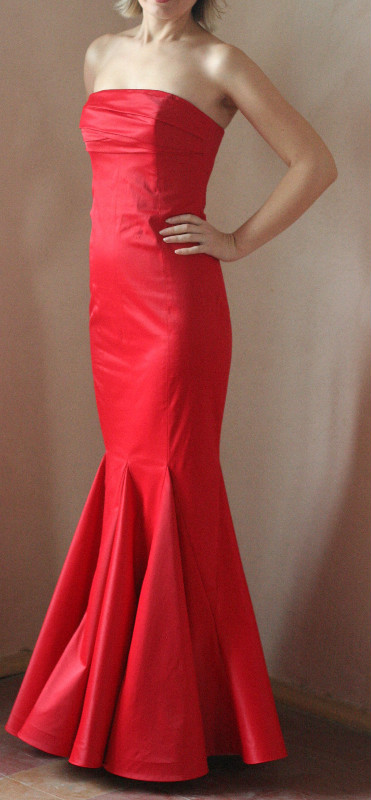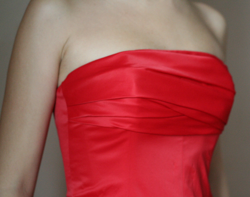 Вечерне платье с драпировкой на груди. Строгость формы обманчива – алый цвет, открытые плечи, горящие огнем стразы выдают страстность Вашей натуры. размер 48 |