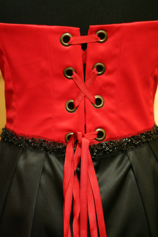 Красное и черное – возможно, вечер в этом платье станет для Вас судьбоносным? Юбка-тюльпан отделена от корсета поясом из бисера. Корсет на шнуровке сзади. размер 44-46 |