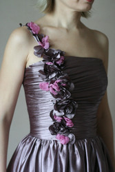 Легкое, нежное, летящее платье просто создано для девушки романтической. Украшают платье асимметричная драпировка, цветы из ткани и декоративная шнуровка на спинке. размер 44-46 |