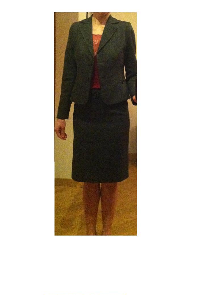 Костюм офисный, цвет темно-серый, юбка классического покроя, сбоку шлица. Состояние отличное |