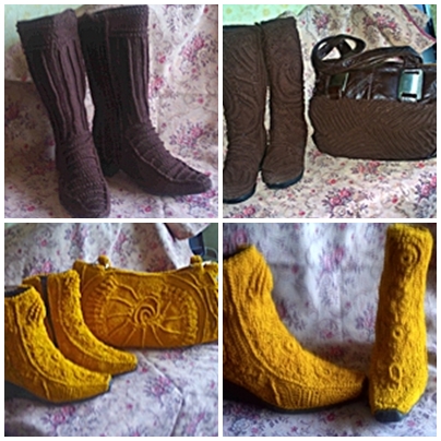САПОГИ и СУМКИ вязаные фри-форм, эксклюзив 1) Сапоги коричневые, весна, р.37.5-38, 140 грн. 2) Сапоги и сумка коричневые, зима, р.38, 350 грн. 3) Сапоги и сумка рыжие, весна, р.38, 350 грн. Все стильное, сделано на заказ, торг |
