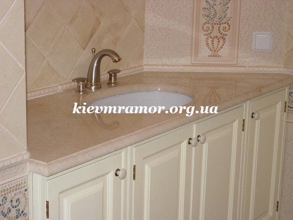Изготовление за 1 м.п. при ширине 60 см - 900 грн. Толщина камня 3 см. Столешница в ванную комнату, изготовленная из натурального камня, прерасно сочетается со многими видами облицовочной плитки, поэтому подобрать напольную и настенную плитку будет не сложно. Связаться с нами можно по телефонам в г.Киеве: (044)362-17-36,(044)232-57-94,(067)685-25-05,(097)215-77-87, (063)232-57-94 Подробнее на сайте: http://kievmramor.org.ua |